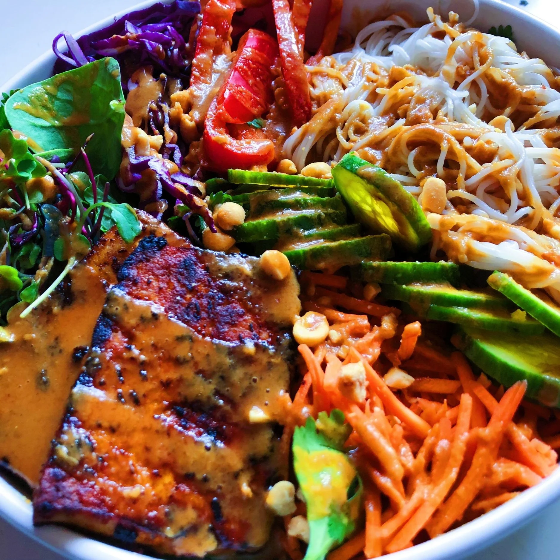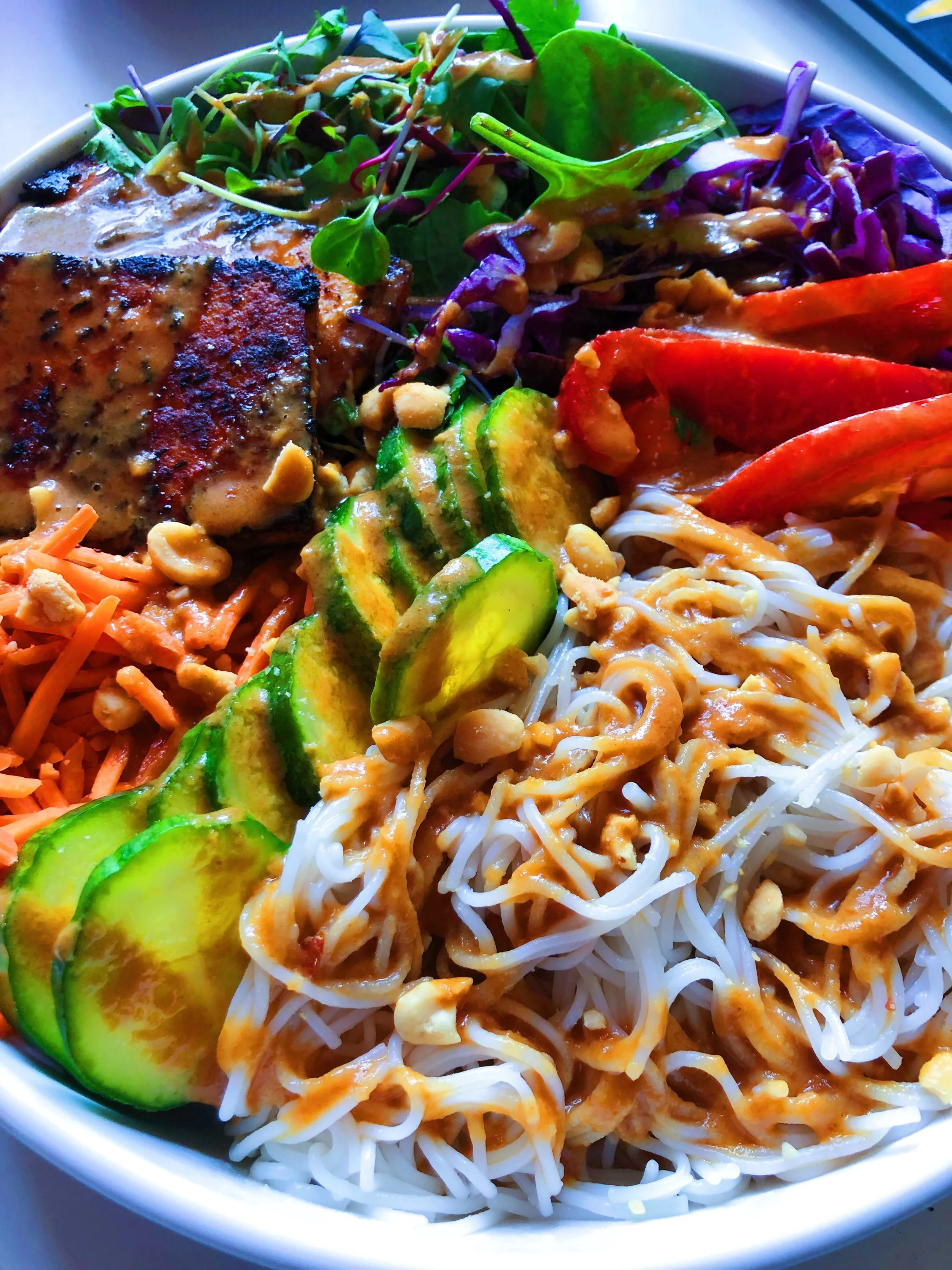 Spicy Peanut Rice Noodle Bowl